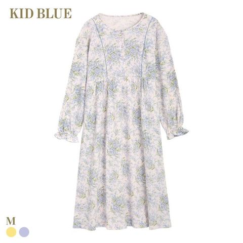 【送料無料】 キッドブルー ワッフルミモザ ワンピース 長袖 ネグリジェ ナイティ ルームウェア パジャマ レディース KID BLUE