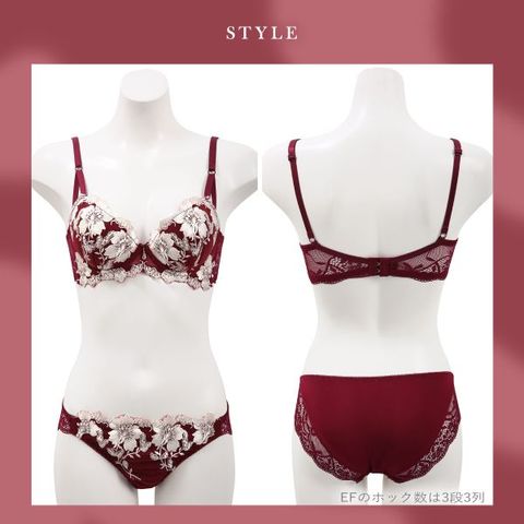 ブラは丸みのきれいなもっちり下厚の内蔵モールドカップ仕様。バストをほどよく寄せて下から持ち上げるU字ワイヤーが、バストトップの位置を高くキープし、デコルテにふっくら感のある丸盛りバストをメイクします。