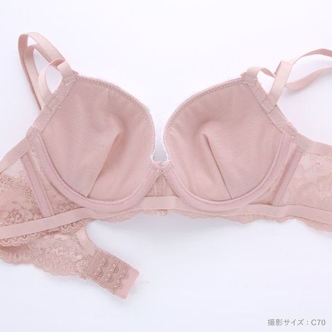 脇高設計で気になる脇肉もしっかりキャッチ。カップ脇は伸びない素材の裏打ちとサイドボーンで、着装時の安定感を高めています。さらに、U字バックで背中のラインをすっきり見せてくれます。バックは透け感の美しい、柔らかなストレッチレース仕立てで後ろ姿も繊細な印象に。