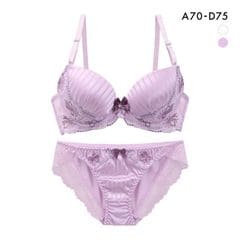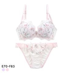 ブラは丸みのきれいなもっちり下厚の内蔵モールドカップ仕様。バストをほどよく寄せて下から持ち上げるU字ワイヤーが、バストトップの位置を高くキープし、デコルテにふっくら感のある美胸シルエットをメイクします。