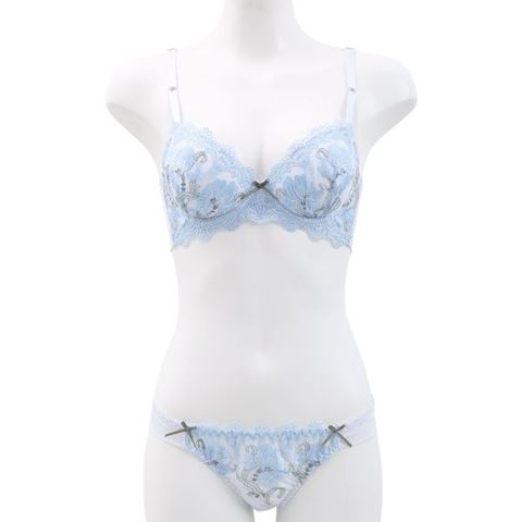 ブラは丸みのきれいなもっちり下厚の内蔵モールドカップ仕様。バストをほどよく寄せて下から持ち上げるU字ワイヤーが、バストトップの位置を高くキープし、デコルテにふっくら感のある美胸シルエットをメイクします。