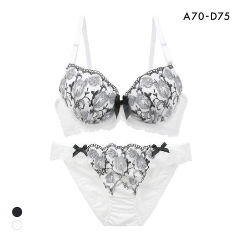 | 仕 様 | ブラ ・3/4カップ ・ホックの数:2段3列 ・下厚内蔵パッドあり、パッドポケットなし ・肩紐取外し:可 ・ワイヤー入り ・サイドボーン:あり ショーツ ・伸縮性:バックのみ縦横にあり ・クロッチ:付き ・透感:なし |