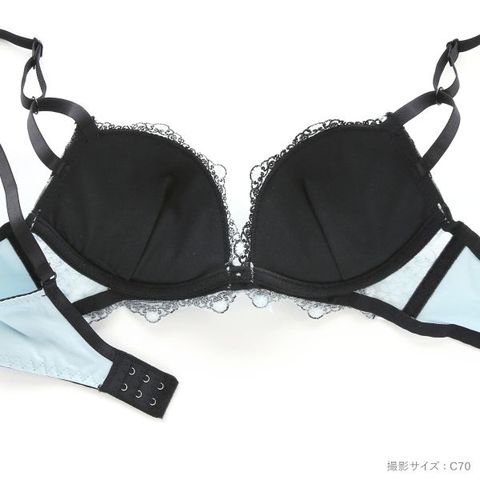 | 仕 様 | ブラ ・脇高設計 ・3/4カップ ・下厚内蔵パッドあり、パッドポケットなし ・L字ワイヤー入り ・サイドボーン:あり ・肩紐取外し:不可(トライアングルストラップ) ・ホックの数:2段3列 ショーツ ・伸縮性:バックのみ縦横にあり ・クロッチ:付き ・透感:なし |