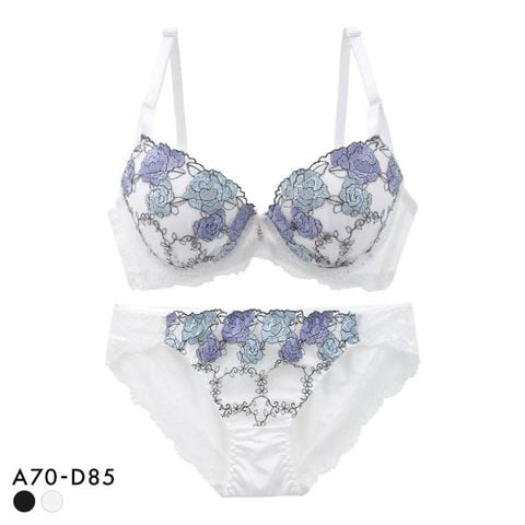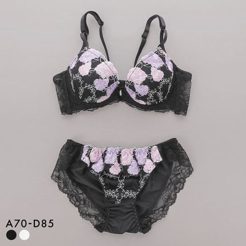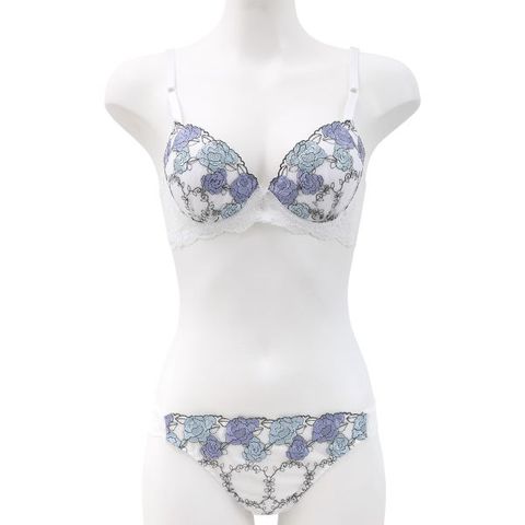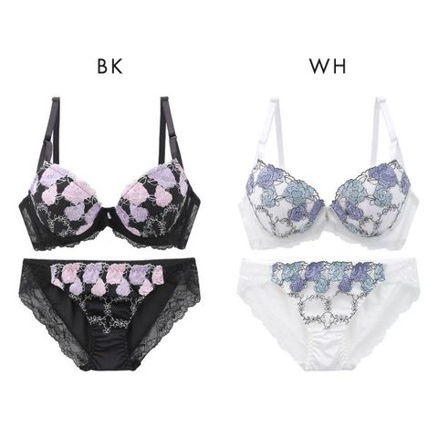 オーロラ糸が輝くパステルカラーのフラワー刺繍がポイントのブラセット。