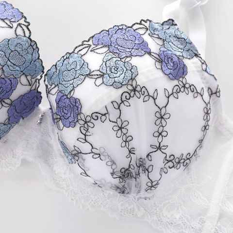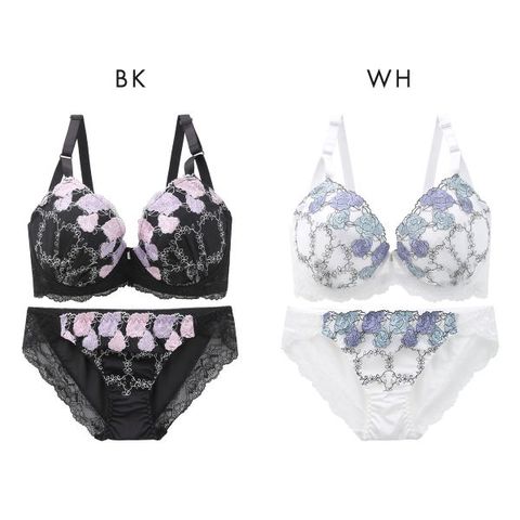 オーロラ糸が輝くパステルカラーのフラワー刺繍がポイントのブラセット。