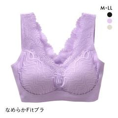 サンエイ SANEI なめらかFit 肩レース付きノンワイヤーブラ ハーフトップ M L L 脇肉 すっきり 脇寄せ もっちりカップ ナイトブラ 単品