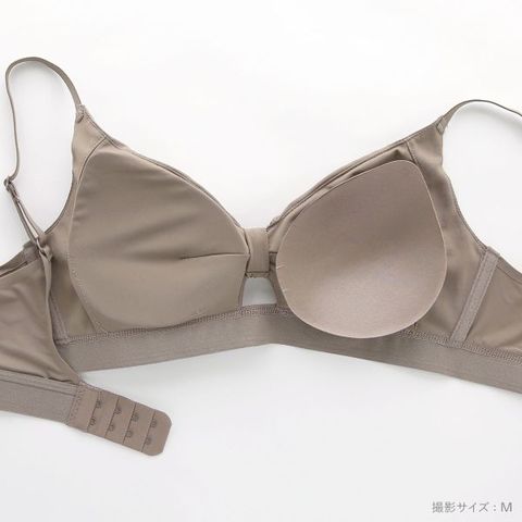 カップはずっとさわっていたくなるような、ふわふわモチモチの下厚パッド。伸縮性に優れた、するんとなめらかな肌あたりの身生地と相まって、とろけるような着け心地でバストを優しく包み込みます。