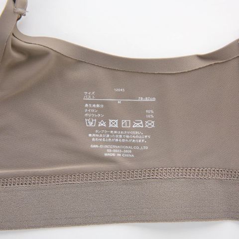 | 仕 様 | ・ノンワイヤー ・ホックの数:2段4列 ・パッド取外し:可 ・サイドボーン:あり ・ストレッチ素材 ・脇高設計 ・タグレス(洗濯表示直接プリント) |