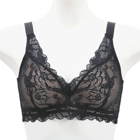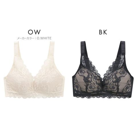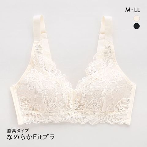フロント全面に贅沢にやわらかなストレッチレースをあしらった脇高タイプのノンワイヤーブラ。