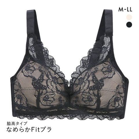 サンエイ なめらかFit PlusMore 脇高ノンワイヤー ブラジャー M L LL 総レース 単品 楽ちん 脇肉 すっきり 脇寄せ なめらか