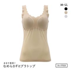 付属パッドは脇部分に高さを持たせた脇高パッド。パッド下側に程よく厚みがあり、身生地と一体化するような、もっちりふわふわ触感でバストを包み、自然にバストアップしてくれます。左右をつなぐズレ防止のテープ付きで、動いてもきれいなバストシルエットをキープ!