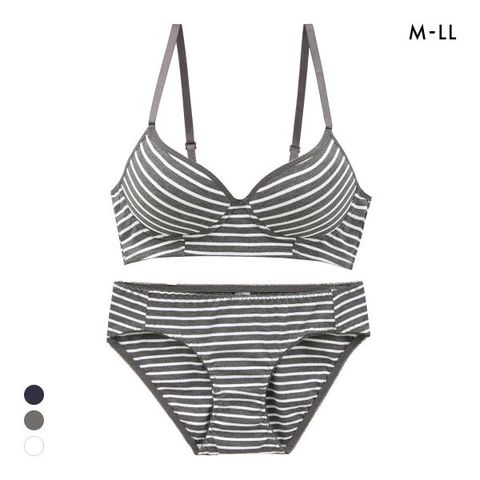 細幅のリブボーダーがカジュアル&ヘルシーなノンワイヤーブラセット。ストレッチのきいた生地を全体に使用しているので、着心地抜群でしめつけ感が少なくストレスを軽減してくれます。