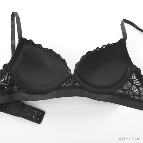 カップは丸みのきれいな下厚内蔵モールドカップ仕様で、バストをナチュラルにサポート。ノンワイヤー&ボーンなしの楽なつけ心地です。くい込みにくい幅広アンダーゴムとやわらかなストレッチレースが適度にフィットしてくれます。