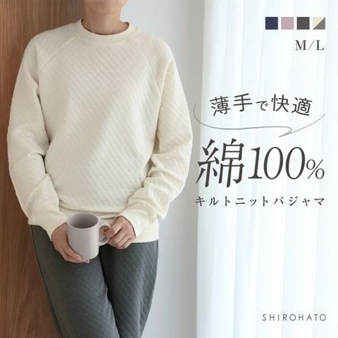毎年ご好評の綿100%キルトニットパジャマに、待望の上下別カラーが登場。暮らしに溶け込む、暖かみのあるニュートラルカラーが加わりました。さらに、人気のネイビーはより深みのあるシックな色合いに改良し、洗練された印象に。
