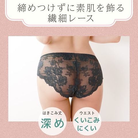 さらに、安心感のあるやや深めの履き込み丈を採用。お腹周りを優しく包み込みながら、バックレースの透け感が大人の色香を添える、まさに「毎日履きたくなる」理想の一枚です。