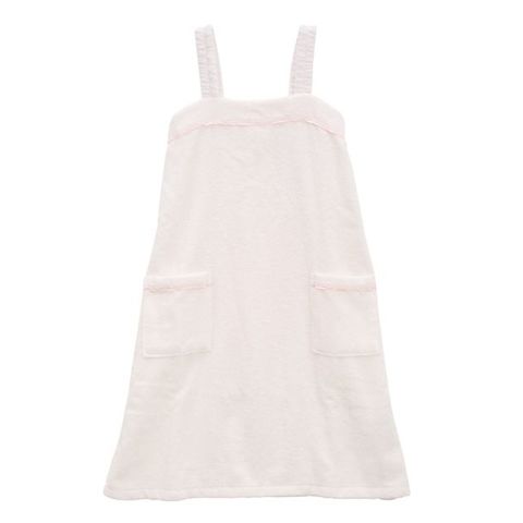 バスト背中と肩紐のゴムシャーリングが優しく伸び、足から、頭から、どちらからもサッと楽々着れるデザインが特徴です。さらにバスト周り内側の縫製凹凸削減してゴワツキを低減させました。ヘアーブラシなどが入る大型のフロントポケットも便利です。