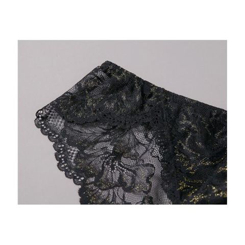 上品な総レースデザインがインポートライクなメンズブリーフ。ゴールドのラメ糸がエレガントな雰囲気を纏わせます。フロントは裏打ち付きで優しい肌当たり。しなやかに伸びるストレッチレースがボディにフィットする心地いい着用感です。