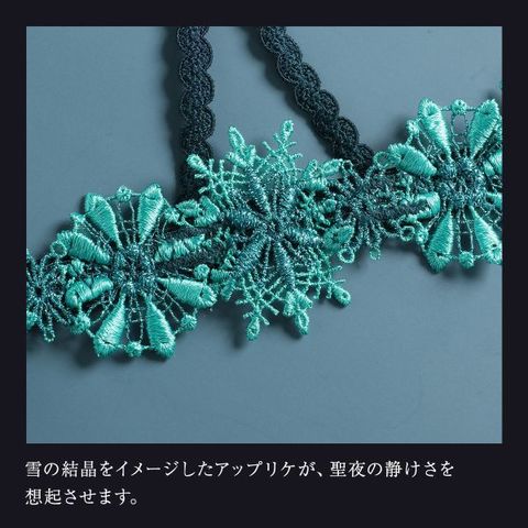きらめく夜の魔法が降り注ぐ聖夜をイメージし、大聖堂のアーチやイルミネーションを写したチュールレースに、ポインセチアと雪の結晶のオーナメントモチーフを重ね、身に着けるたび、幻想的な夜の輝きを放ちます。