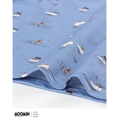ムーミンと仲間たちが、海にぷかぷかと浮んで遊んでいる、ユーモアあふれる柄です。