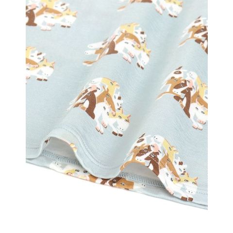馬が9頭、まるっと集まっているプリント柄で縁起をかつぎます。