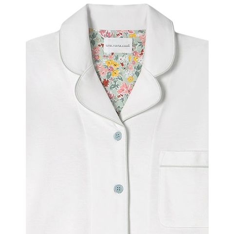 綿混のやわらかな天竺素材を使用した開襟シャツの長袖パジャマ。