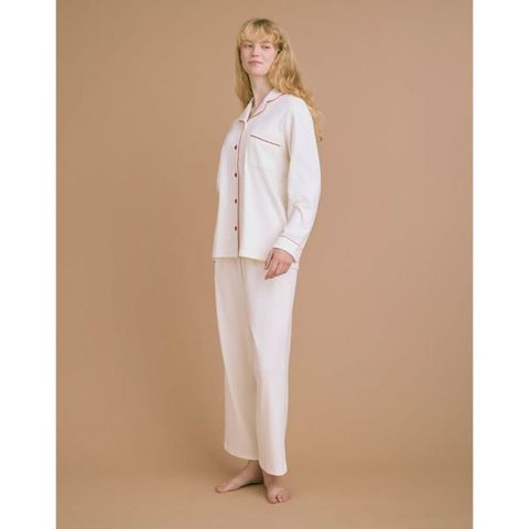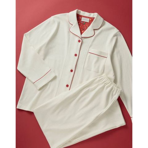 綿100%の開襟シャツの長袖パジャマ。