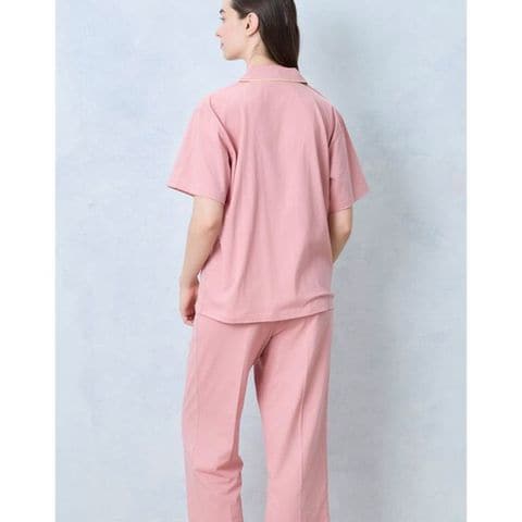 かわいく着られて、ちょっぴり高級感のある開襟シャツの半袖パジャマ。