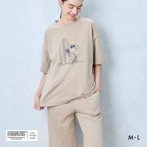 胸の部分には愛らしいスヌーピーと仲間たちを大胆にプリントしたオーバーサイズのゆったりとしたラフなシルエット。