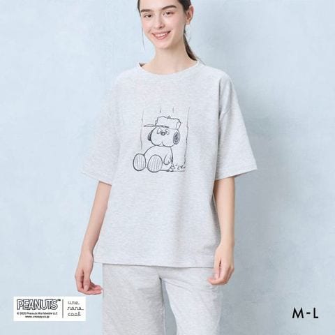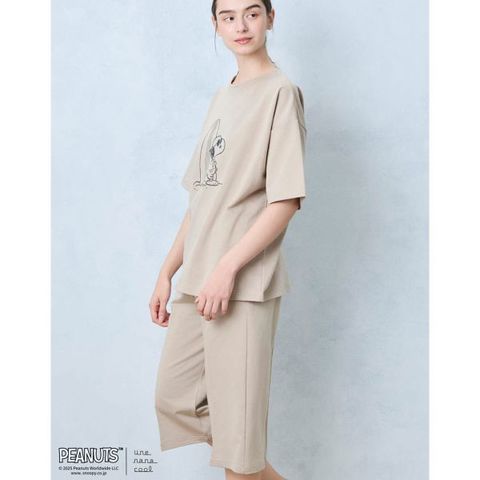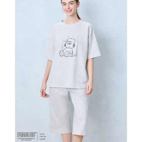 【送料無料】 ウンナナクール 綿混 PEANUTS × une nana cool リヨセルハイゲージウラケパジャマ ルームウェア スヌーピー 上下セット 長袖 レディース une nana cool