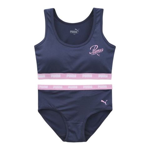 スポーツブランドの王道、プーマのガールズハーフトップ&ショーツセットです。