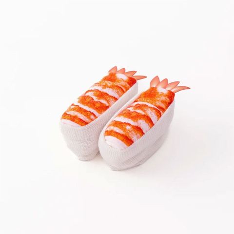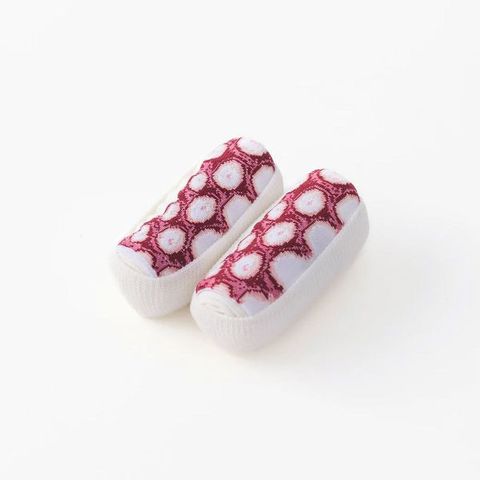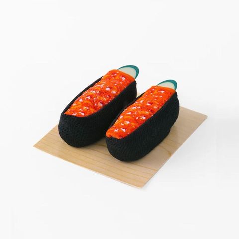 プリントではなく編地でネタを再現し、洗濯しても剥げたり色落ちせず「きときと」なネタの鮮度をキープ。かかとが無いためどんな足にもぴったりフィット。サイズを気にせずお好きなネタをお選びいただけます。(サイズ目安:22cm~27cm)