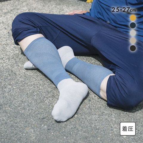 「らく圧」の編地構造で筋肉の収縮=筋ポンプ作用をサポート。ふくらはぎの筋肉を押し上げることで軽やかな足元をキープ。筋肉が少ない足首部分の圧を弱めた構造で脱ぎ履きしやすくなっています。仕事やアウトドアシーン、タウンユースなどいろいろな場面で活躍してくれます。