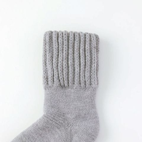履き口は伸びの良いゆったり口ゴムを使用。靴下の嫌な締め付けを軽減し、長時間の着用もストレス少なく過ごせます。ふっくらとしたボリューム感でクッション性があり優しく足を保護してくれます。毛布をまとっているようなふんわりとした履き心地がやみつきになります。