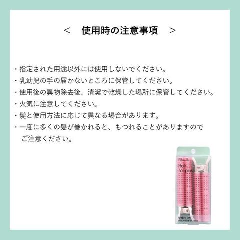 | 仕 様 | ・サイズ:幅約33mm×長さ約110mm 使用時の注意事項 ・指定された用途以外には使用しないでください。 ・乳幼児の手の届かないところに保管してください。 ・使用後は異物除去後、清潔で乾燥した場所に保管してください。 ・火気に注意してください。 ・髪質や使用方法に応じて仕上がりがイメージと異なる場合があります。 ・一度に多くの髪を巻くと絡まることがありますので、ご注意ください。 当店は、正規代理店から仕入をした正規品を販売してます。 ※不良品・お届け間違い以外の返品ならびに交換は承っておりません。 |