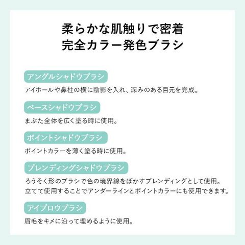 ・ブレンディングシャドウブラシ:境界線をぼかすブレンディングに使用。また立てて使用することでアンダーラインとポイントカラーにも使用できます。