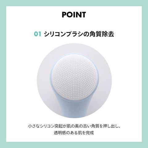 小さなシリコン突起が肌の奥の古い角質を押し出し、透明感のある肌を完成