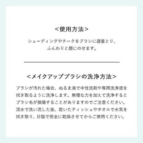シェーディングまたはチークをブラシに適量とり、ふんわりと顔にのせます。