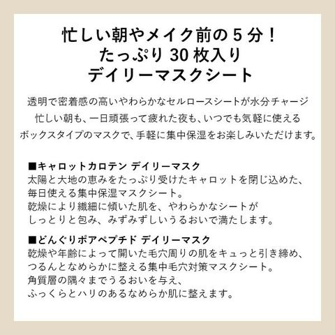 忙しい朝やメイク前の5分!たっぷり30枚入りデイリーマスクシート
