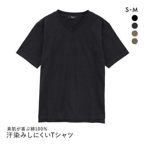 汗ばむ季節も安心!綿100%素材に汗染み防止加工を施した、ニッセンのVネック5分袖Tシャツ。気になる汗染みを軽減し、快適な着心地をキープします。