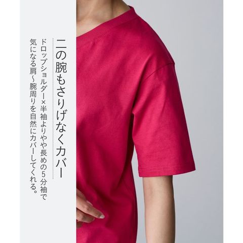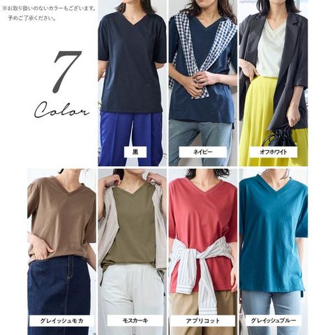 肌触りの良い綿100%素材で、デイリーユースに最適。すっきりとしたVネックと、気になる二の腕をカバーする5分袖丈がポイント。豊富なカラーとサイズ展開で、自分にぴったりの一枚が見つかります。