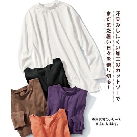 一枚で主役になるシンプルなデザインなので、インナーとしてはもちろん、メインで着用しても様になります。移り変わる季節に合わせて、様々なコーディネートを楽しんでいただけます。