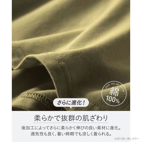 汗をかきやすい季節でも、肌触りの良い綿100%素材がさらっと快適な着心地をキープ。