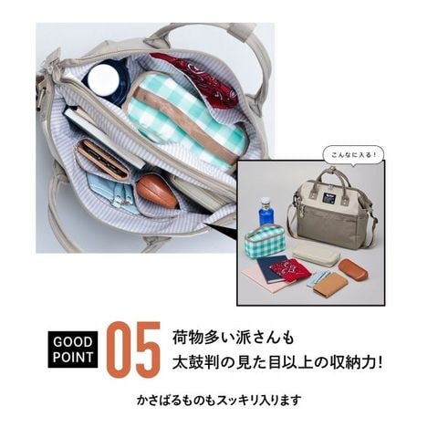 大きすぎない絶妙なサイズ感と、ショルダーストラップ付きの2WAY仕様で、タウンユースからマザーズバッグまで幅広いシーンで活躍します。