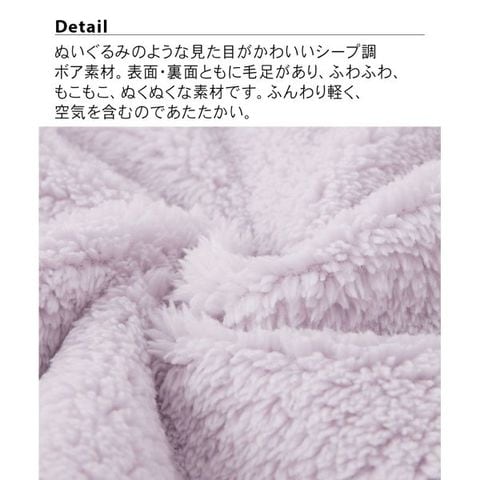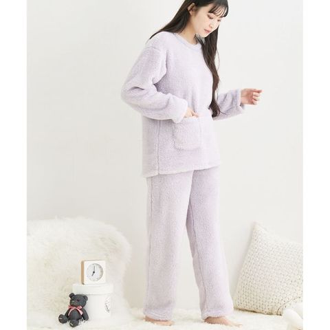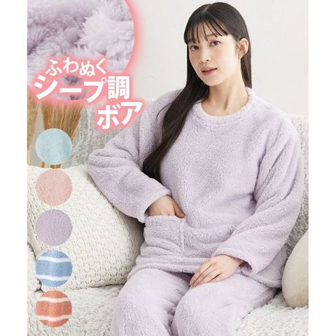 ふわぬく!ニッセンのシープ調ボアルームウェア上下セットです。ぬいぐるみのような見た目がかわいい、毛足のある両面ボア素材のルームウェアです。ふんわり軽く、もこもこの中に空気を含んで暖かさを保ちます。