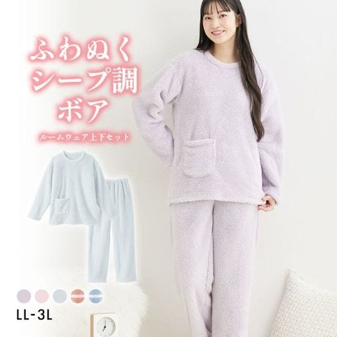ニッセン ふわぬくシープ調ボアルームウェア上下セット LL 3L nissen