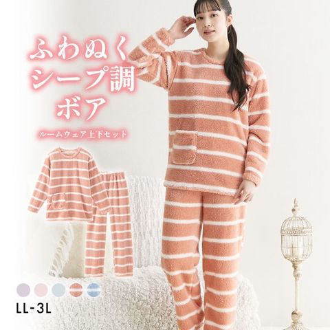 ニッセン ふわぬくシープ調ボアルームウェア上下セット LL 3L nissen