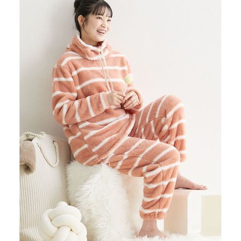251106 nissen ニッセン セットアップ ルームウエア 部屋着 寝巻き 女性用 女子 大人 レディース 秋冬 秋用 冬用 もこもこパジャマ モコモコ ふわふわ もふもふ ボア 両面起毛 厚手 暖かい 防寒 温かい あたたかい あったかい 保温 冷え性 ぬくぬく あったか
