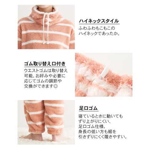 ふわふわ、もこもこのマイクロファー素材を使った、ニッセンの軽くて暖かいルームウェアです。ネックウォーマーを付けているようなハイネックデザインで、首元までしっかり暖かく過ごせます。