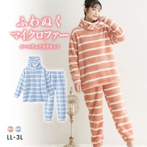 ニッセン ふわぬくマイクロファーハイネックルームウェア上下セット LL-3L nissen