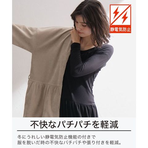 UVカット機能で冬の紫外線も防ぎ、静電防止機能で嫌なパチパチも防止。伸縮性に優れたストレッチ素材なので、動きを妨げません。